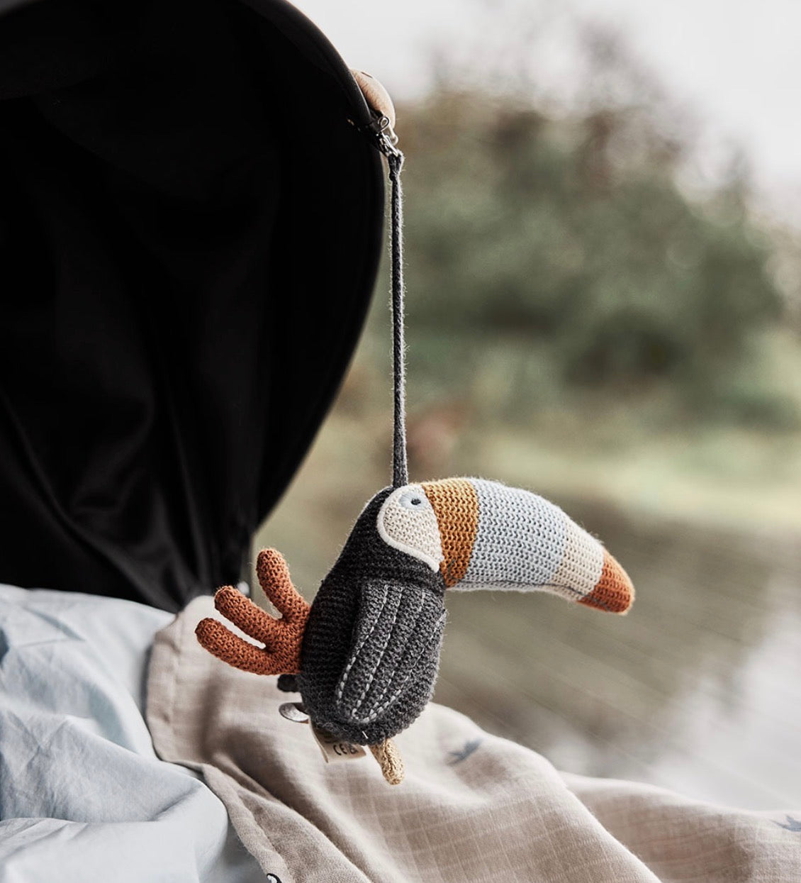 Rendi ogni passeggiata più dolce con la clip a forma di tucano di Oyoy Living! Realizzata in cotone Oeko-Tex a maglia, sicuro e delicato per i più piccoli, questa clip è l’accessorio perfetto per decorare carrozzine e passeggini con stile e allegria.