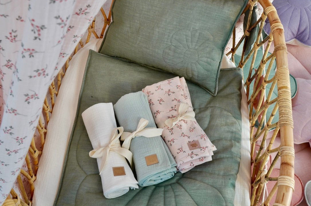 Finalmente Moi Mili ha creato un morbido corredino in mussola pensato per accompagnare il tuo bebè con dolcezza, dalla nanna ai primi momenti di gioco.