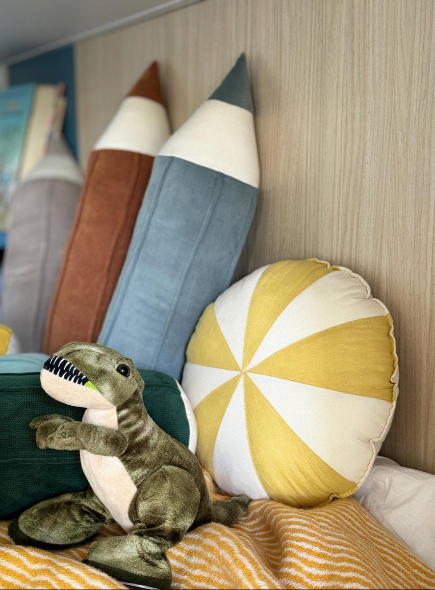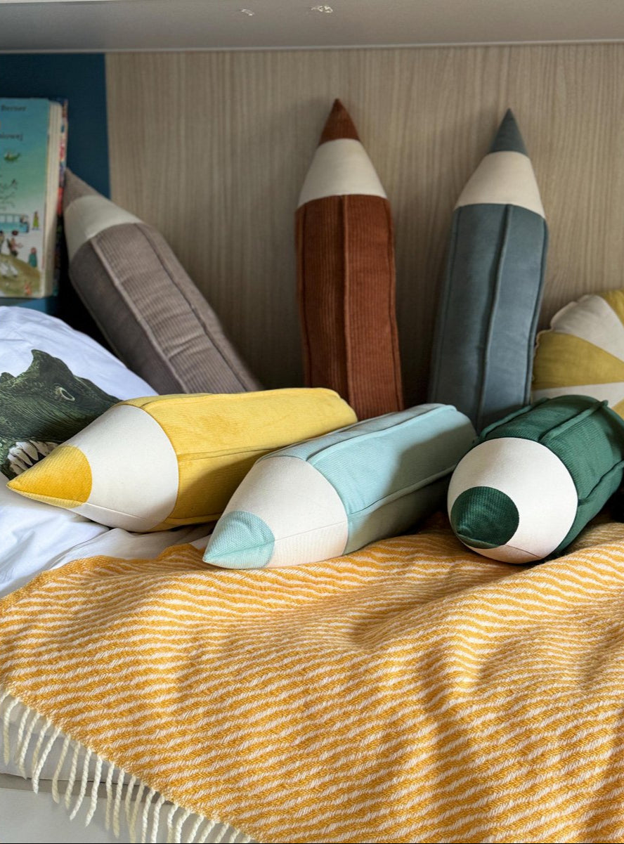 Il cuscino in velluto "Pastello Petrolio” Moi Mili è molto più di un cuscino: è un pastello gigante che porta colore, allegria e fantasia nella cameretta. Con la sua forma originale e i toni delicati dell’arcobaleno, trasforma ogni angolo in un piccolo mondo creativo dove i bambini possono sognare e inventare storie.