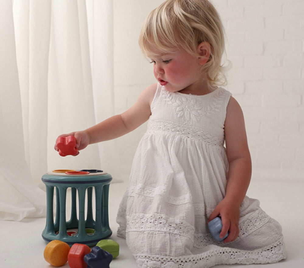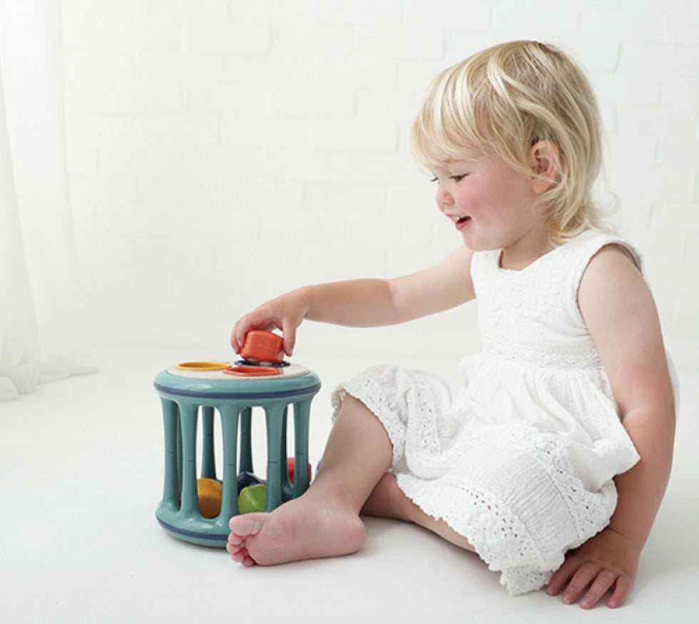 Realizzata in bioplastica derivata da paglia di grano e materiali sicuri, la Palla Rotolante delle Forme Bio Tolo è adatta dai 12 mesi in su e porta in casa un divertimento sostenibile.