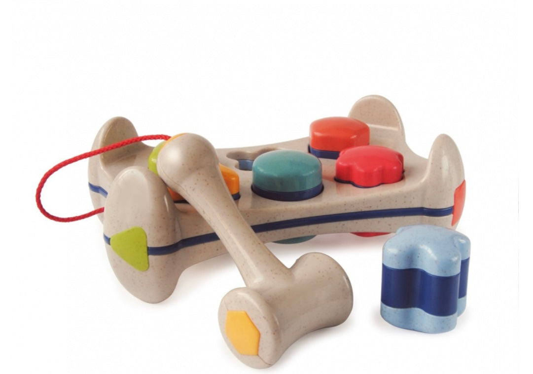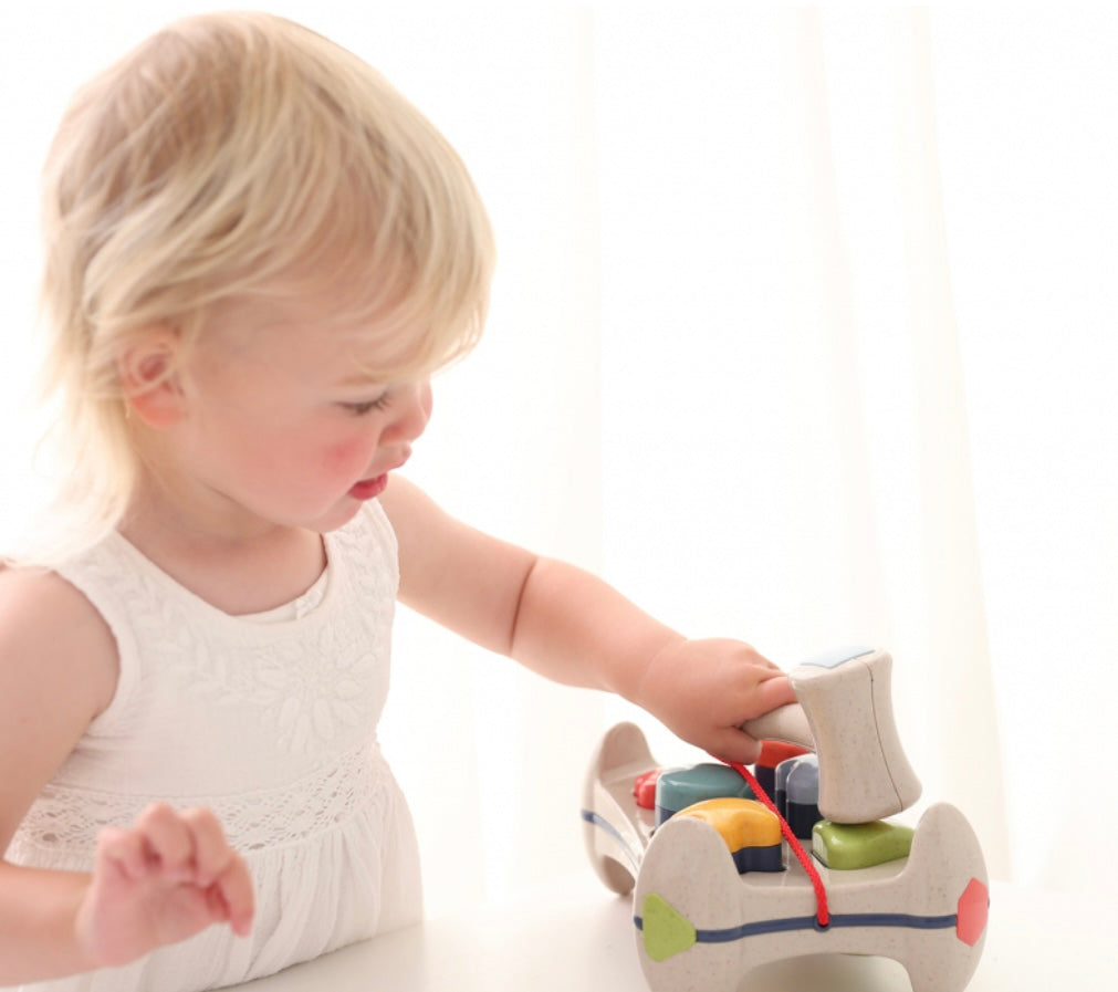 I bambini possono inserire le formine colorate nei fori giusti e usare il martello per colpirle, ascoltando il morbido tintinnio che accompagna ogni colpo. Ruotando la panca, le formine possono essere colpite di nuovo, regalando ore di gioco interattivo. Il martello è saldamente fissato al piano, così i piccoli possono divertirsi senza perderlo.