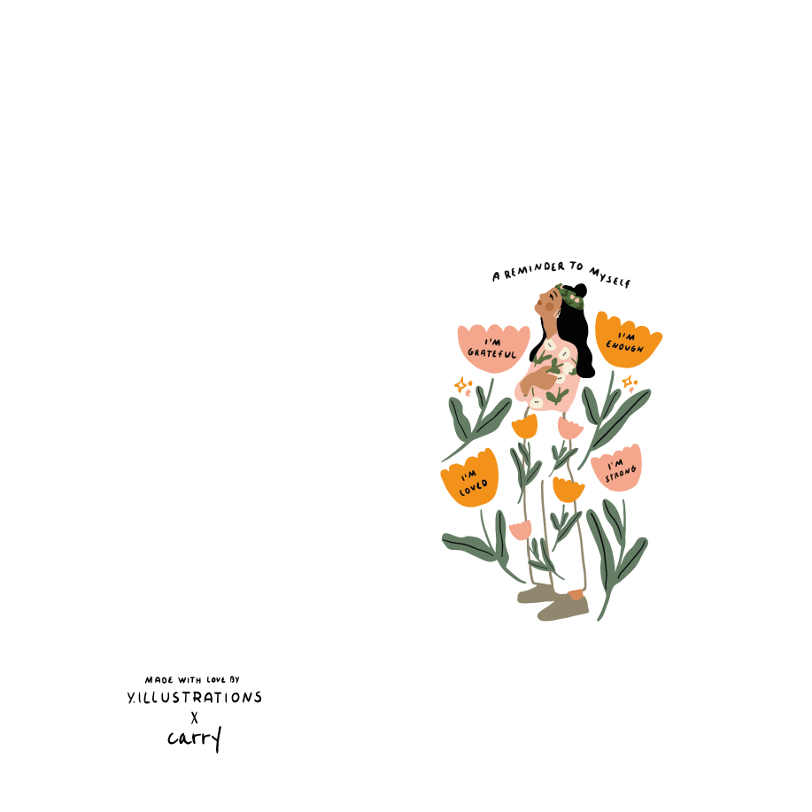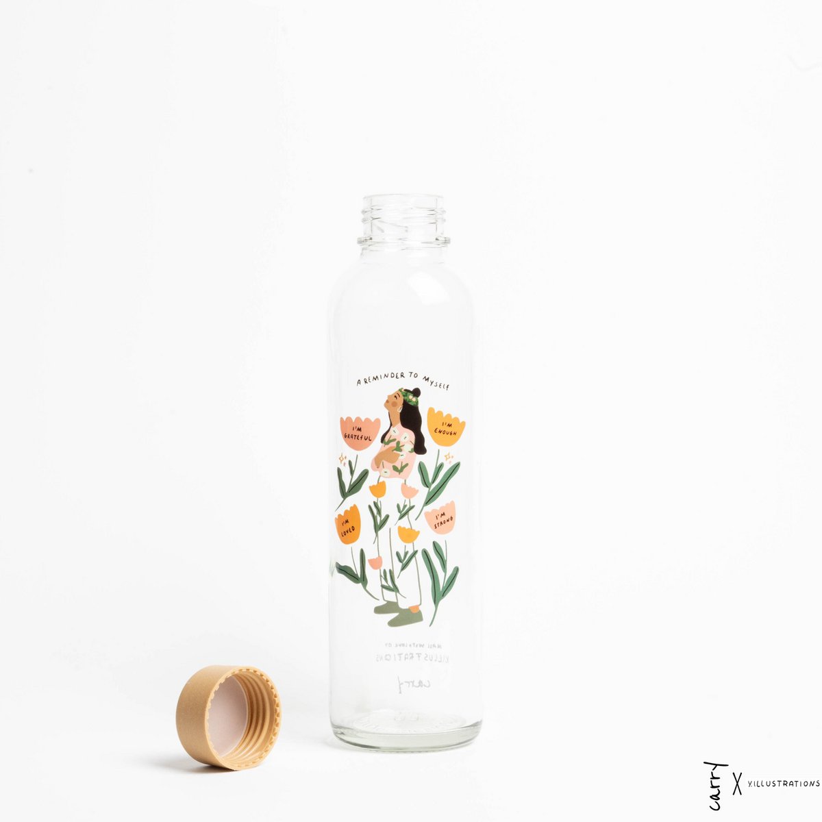 La dolce illustrazione floreale e le frasi positive — I am loved, I am strong, I am enough, I am grateful — trasformano ogni sorso in un invito a fermarti, respirare e riconnetterti con te stessa.