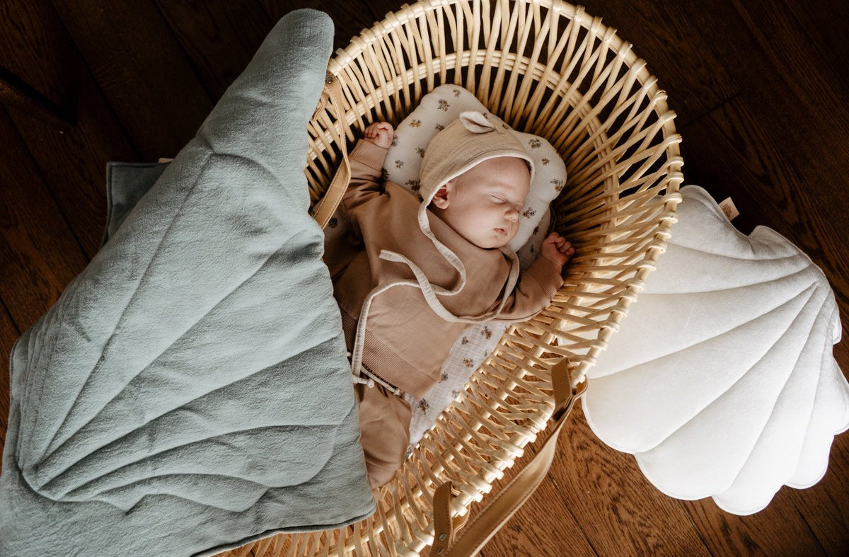 Per un corredino coordinato e sostenibile, abbinala alla nostra collezione di cuscini Conchiglia Moi Mili, al Sacco Nanna di lino e alla copertina in mussola: insieme creeranno un set raffinato e naturale, perfetto per accompagnare il tuo bambino in ogni momento.