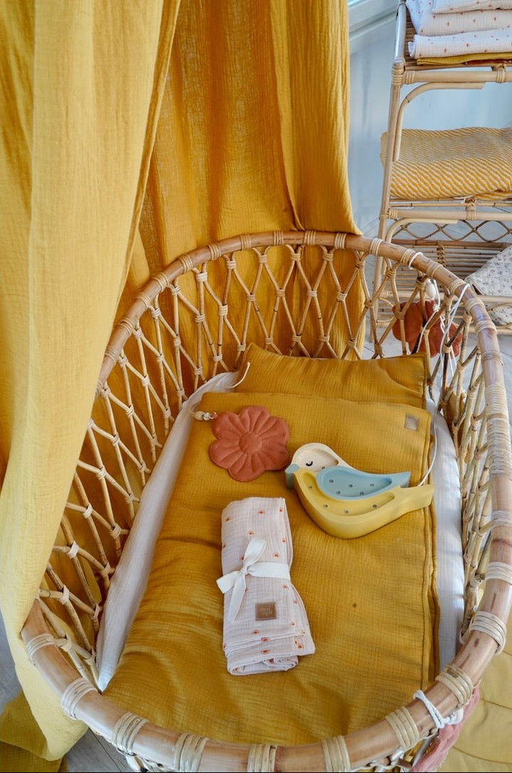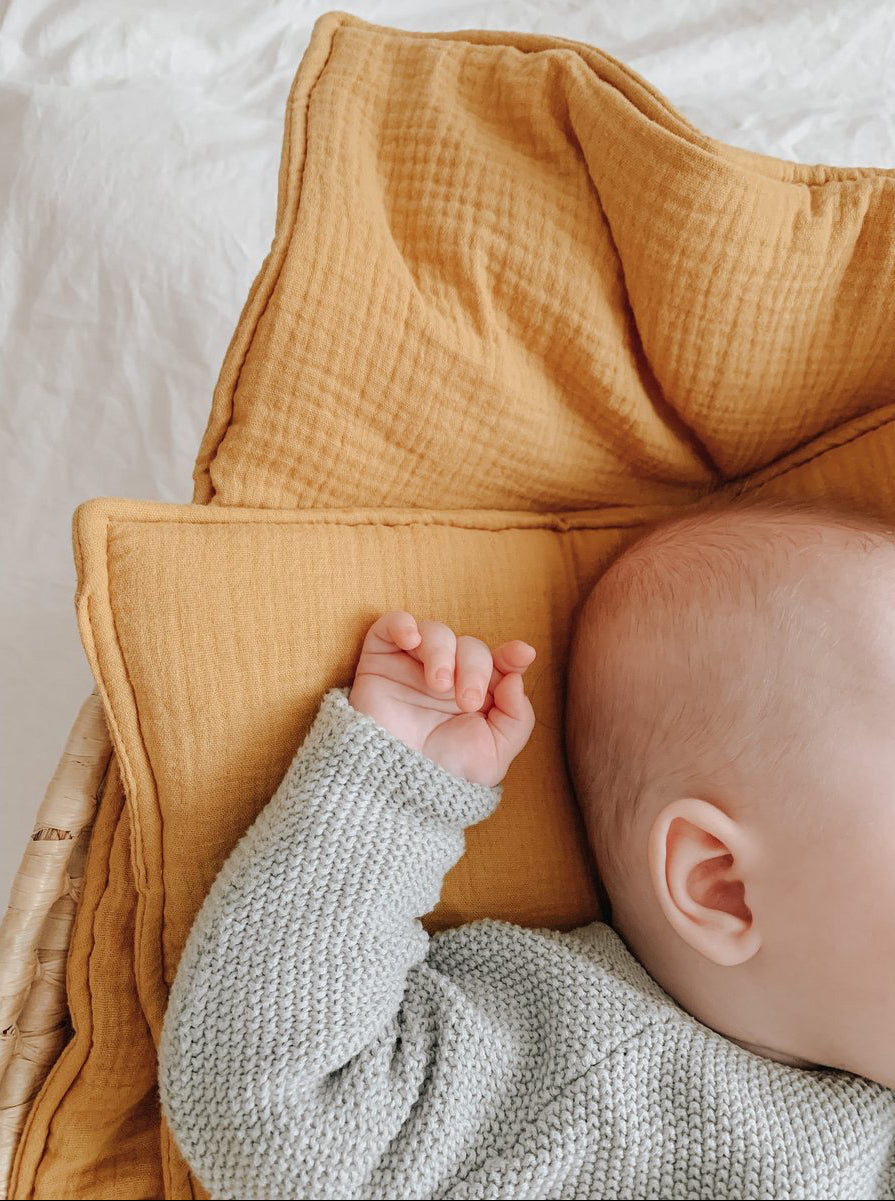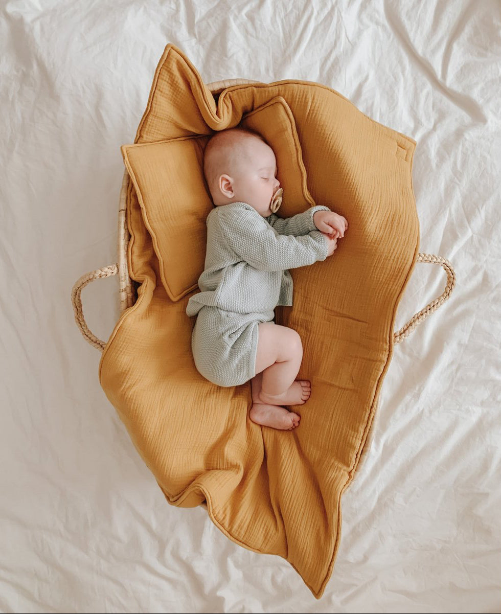 Per un corredino coordinato e sostenibile, abbinala alla nostra collezione di cuscini Moi Mili, al Sacco Nanna di lino e alla copertina in mussola: insieme creeranno un set raffinato e naturale, perfetto per accompagnare il tuo bambino in ogni momento.