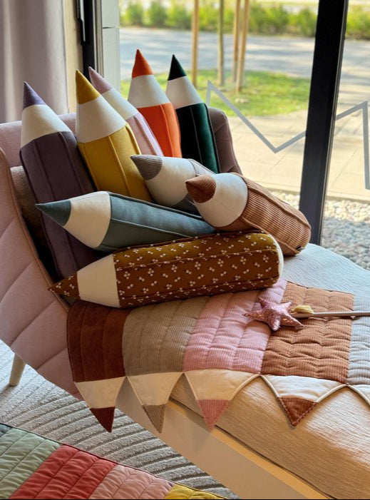 Il Tappetino Pastelli della Collezione “Back to School” di Moi Mili è molto più di un semplice tappeto: è uno spazio morbido dove il tuo bambino può giocare, imparare e sognare in totale sicurezza. Realizzato a mano con velluto e velluto a coste in cotone 100% certificato GOTS, combina sostenibilità, eleganza e un tocco di allegria.