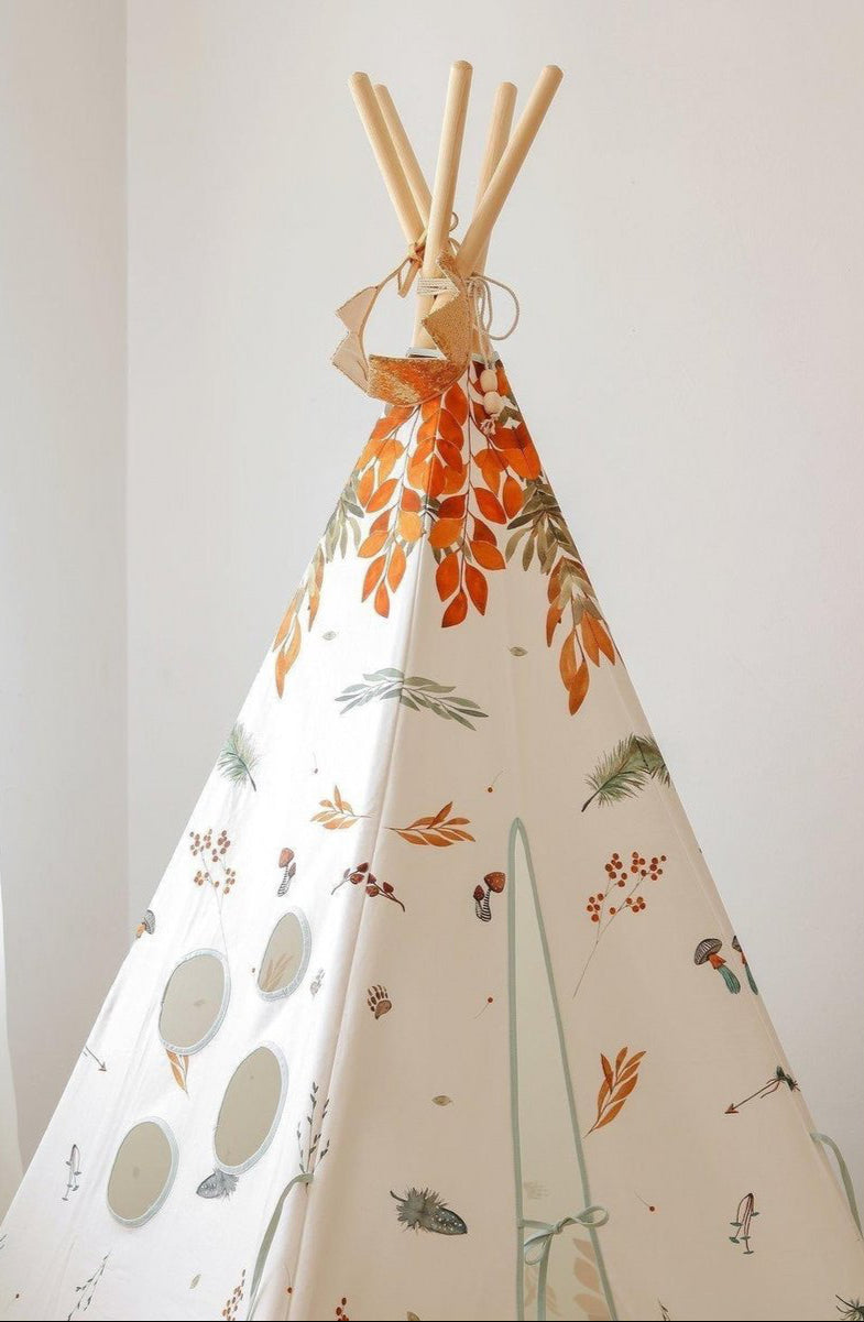 Questa tenda teepee appartiene alla collezione autunnale, ispirata alle passeggiate nel bosco e alle notti sotto le stelle. Realizzato in collaborazione con l’illustratrice Iwa Kowalska, porta in casa la magia della foresta e un’atmosfera calda e avvolgente.